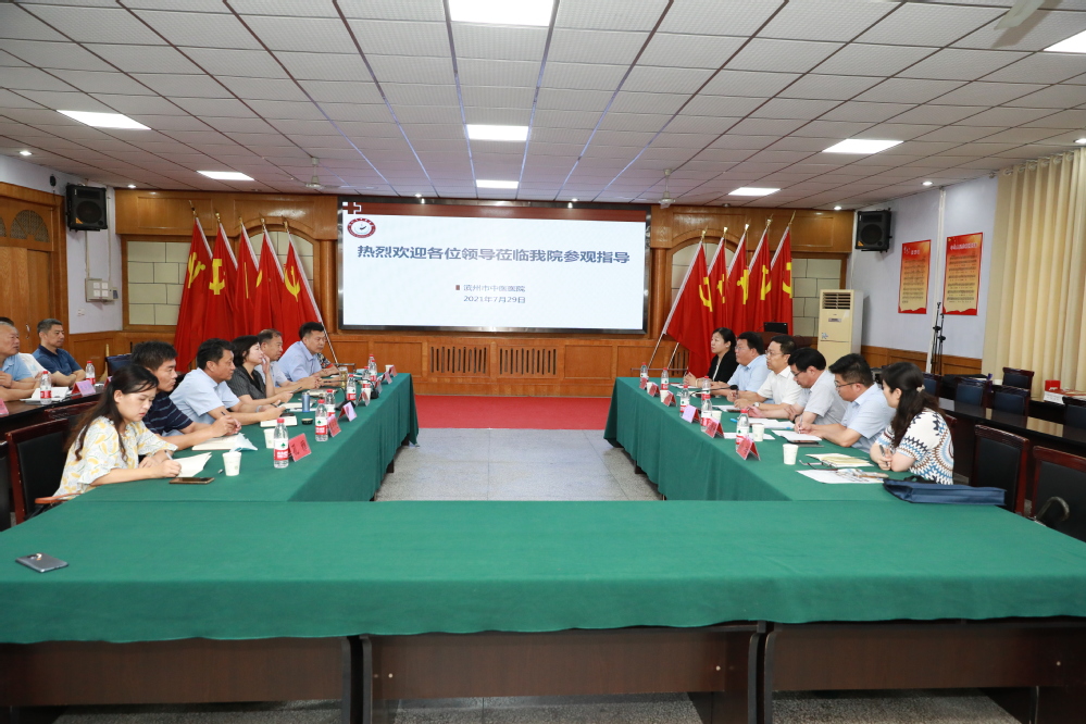 7月29日上午,副院长孙祥军一行到滨州市中医医院考察调研,滨州市卫健委党组书记、主任商秀丽,滨州市卫健委副主任孙景华,校发展规划处、人力资源处、计划财务处、实践教学管理处、第一临床医学院(滨州附院)负责人,滨州市中医医院领导班子成员及相关科室负责人参加调研。
