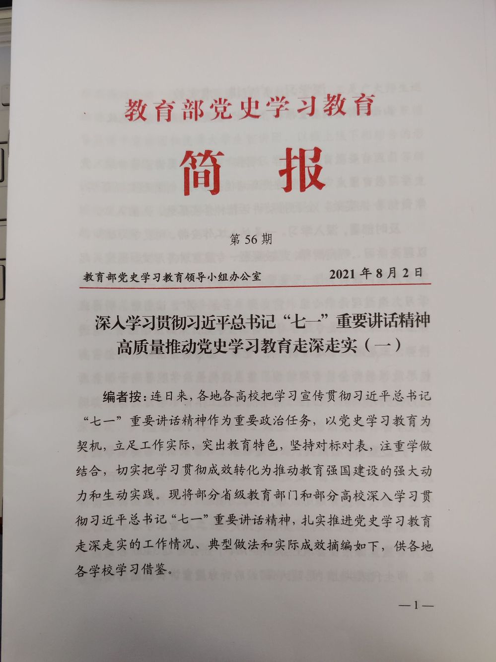 8月2日,由教育部党史学习教育领导小组办公室编印的《教育部党史学习教育简报》(第56期)摘编了部分省级教育部门和部分高校深入学习贯彻“七一”重要讲话精神推进党史学习教育走深走实的工作情况,山东省委教育工委《聚焦“三坚持”突出“三强化”以重要讲话精神为遵循持续把党史学习教育引向深入》得到刊发推荐,我校依托学生社团开展“致敬百年”千人理论宣讲活动的典型做法入选本期简报,全省仅有四所高校的特色做法入选。