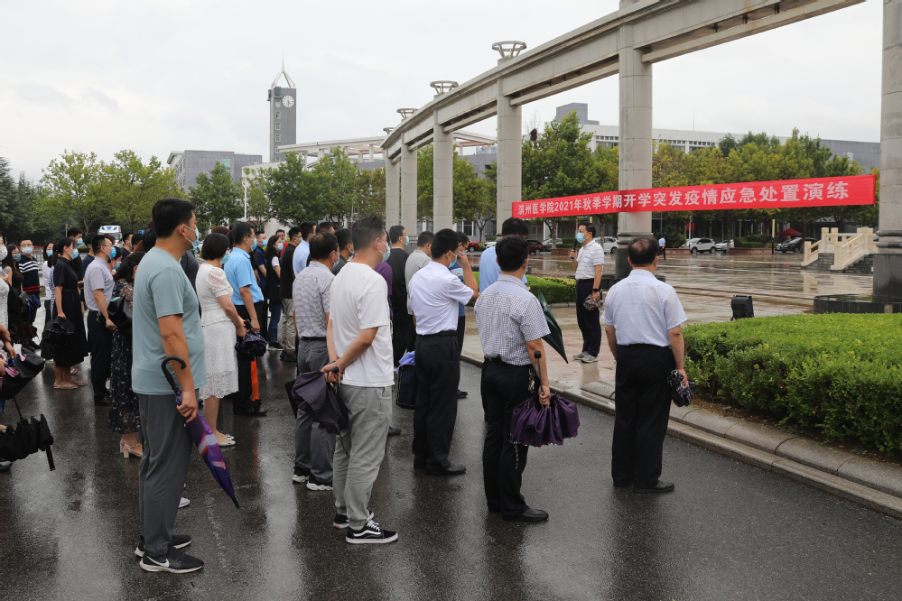 动员后,学校根据《2021年秋季学期开学工作方案》《2021年秋季学期学生返校工作方案》《滨州医学院突发新冠肺炎疫情应急处置办法》及相关文件要求,现场设定学生返校报到、教室上课、餐厅就餐、宿舍休息4个场景,完整模拟学生出现体温异常等情况时的应急处置程序。