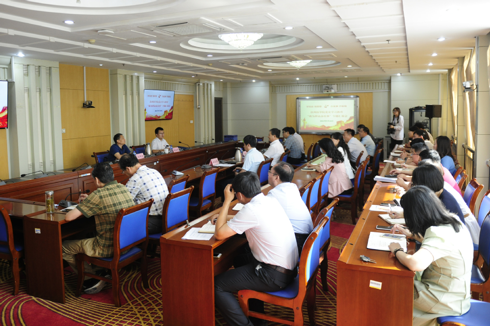 9月16日,省委党史学习教育第四巡回指导组成员、淄博市委老干部局正县级干部王德水一行2人来校督导党史学习教育专题组织生活会“回头看”和“我为群众办实事”情况。校纪委书记马东太,校党委委员、宣传部部长张玉龙出席工作汇报会并陪同督导,党史学习教育领导小组办公室及工作组成员、各党总支(党委)书记参加会议。
