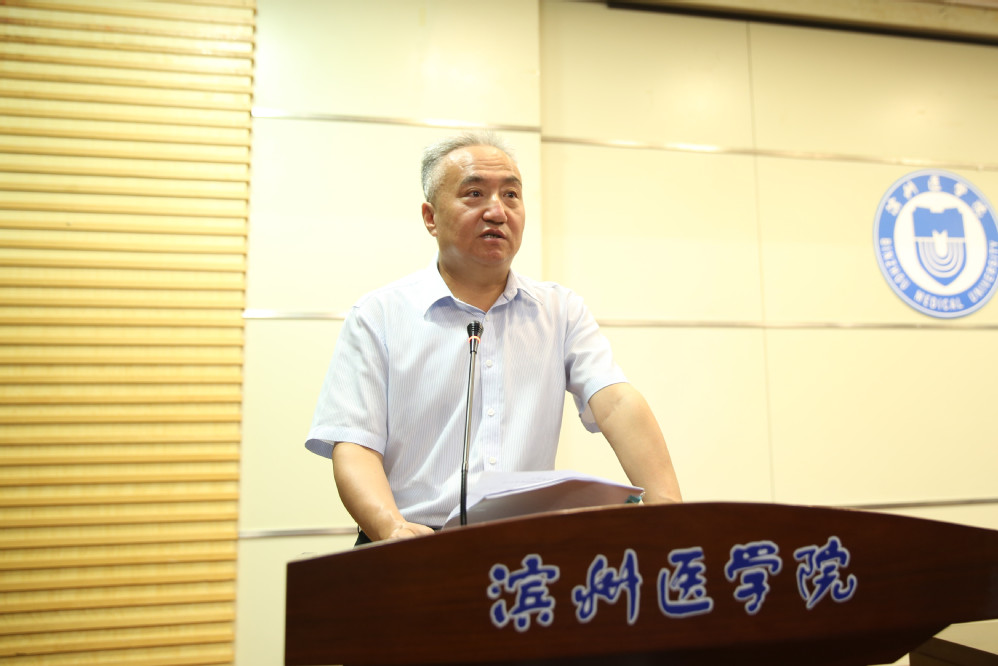 王广成代表学校对新进教职工表示热烈欢迎,并介绍了学校发展历史、办学特色、当前任务和发展规划等基本情况。他指出,学校当前正处在发展的关键时期,新职工的加盟进一步壮大了学校的师资队伍,改善了师资结构,为学校发展增添了新活力、注入了新动力。学校也将不遗余力地为优秀人才施展才华提供充足的空间和广阔的舞台,让青年教师干工作有环境,谋发展有政策、创事业有平台。他勉励广大新职工,一要不忘初心,勇担立德树人使命。切实增强“四个意识”、坚定“四个自信”、做到“两个维护”,成为党执政的坚定支持者、先进思想文化的传播者、学生健康成长的指引者。二要身正为范,争做师德师风标杆。坚持教书育人相统一,坚持言传身教相统一,坚持潜心问道和关注社会相统一,坚持学术自由和学术规范相统一,努力做到以德立身、以德立学、以德施教。三要苦练内功,提升教学科研能力。以滨医为新起点,不断提高自身科研能力,做科学知识的传播者和创造者。他希望全体新职工要坚定理想信念、厚植爱国情怀、涵养高尚师德,全面提升政治素养、师德涵养和专业能力,为学校建设优势突出、特色鲜明的高水平医科大学贡献力量。