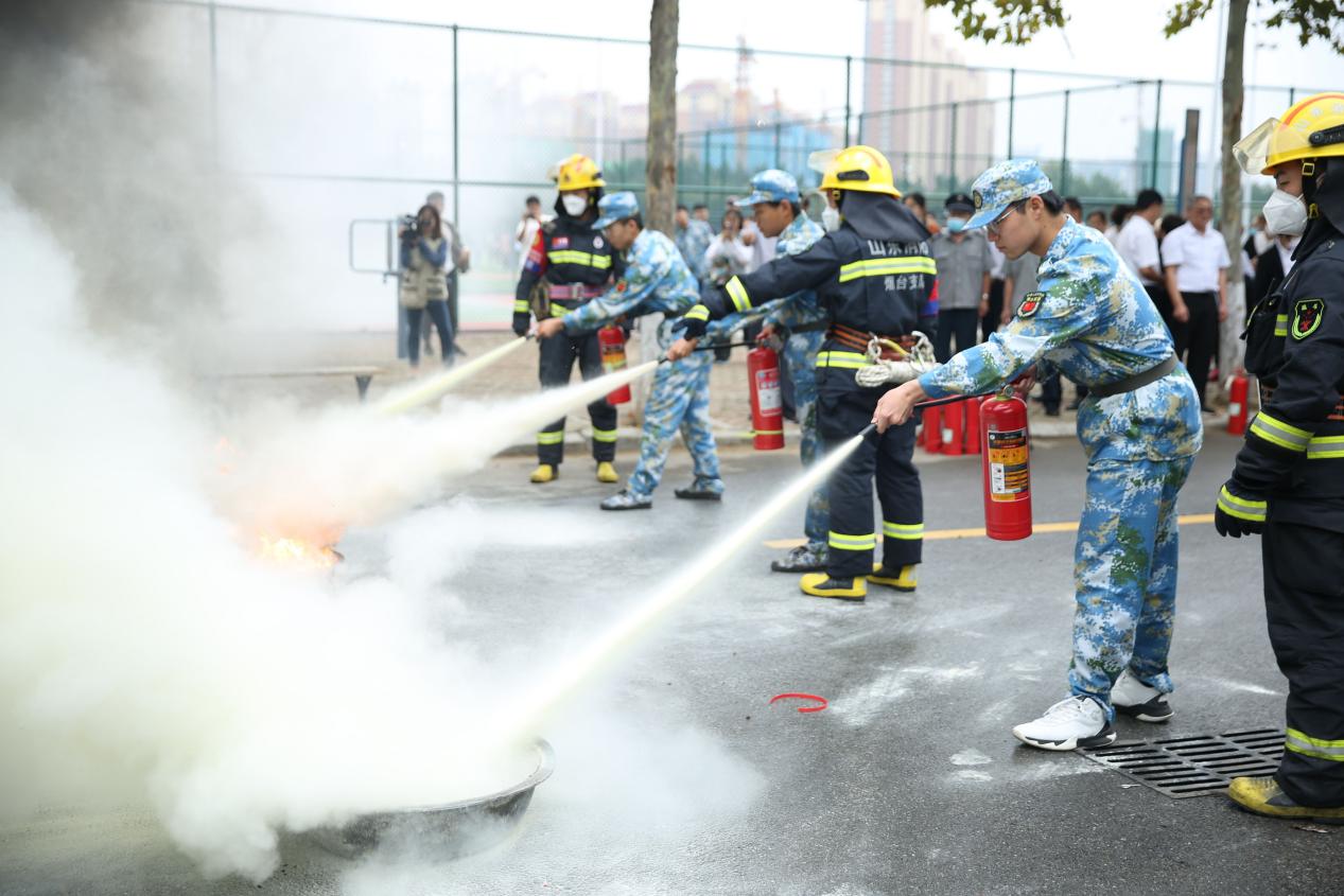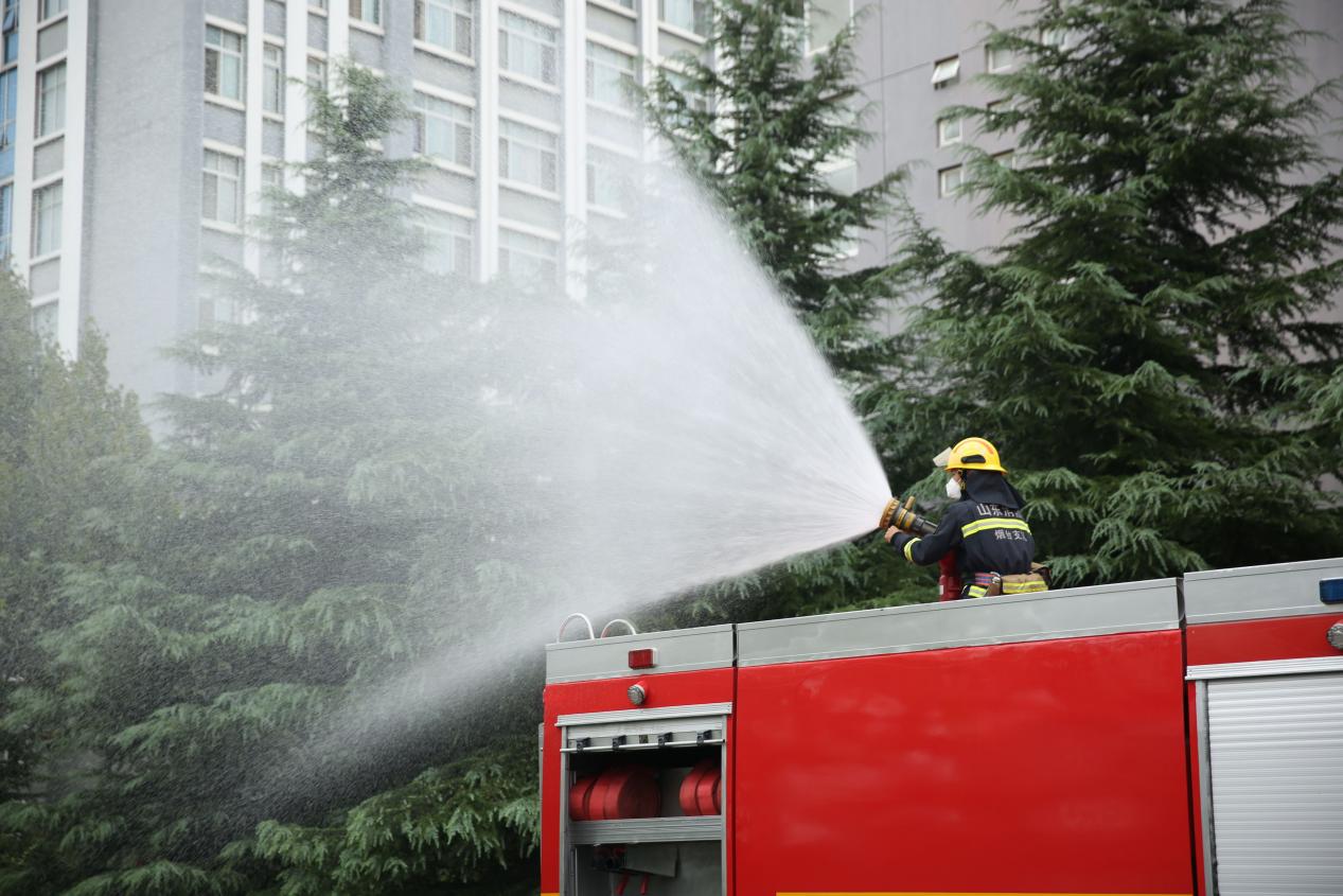 逃生疏散结束后,吴小鹏对逃生疏散活动进行了点评,指出了逃生疏散过程中应当注意的事项。莱山区消防救援大队指战员开展了消防水车、消防登高平台云梯车、消防抢险救援车的现场模拟作业展示,使参训师生进一步了解了消防特种作业车辆的救援功能和作业环境。随后,现场讲解了消防安全常识,展示了部分抢险救援器材,进行了消防水带连接等日常训练科目,并指导师生使用灭火器和室内消防栓进行了现场灭火演练。