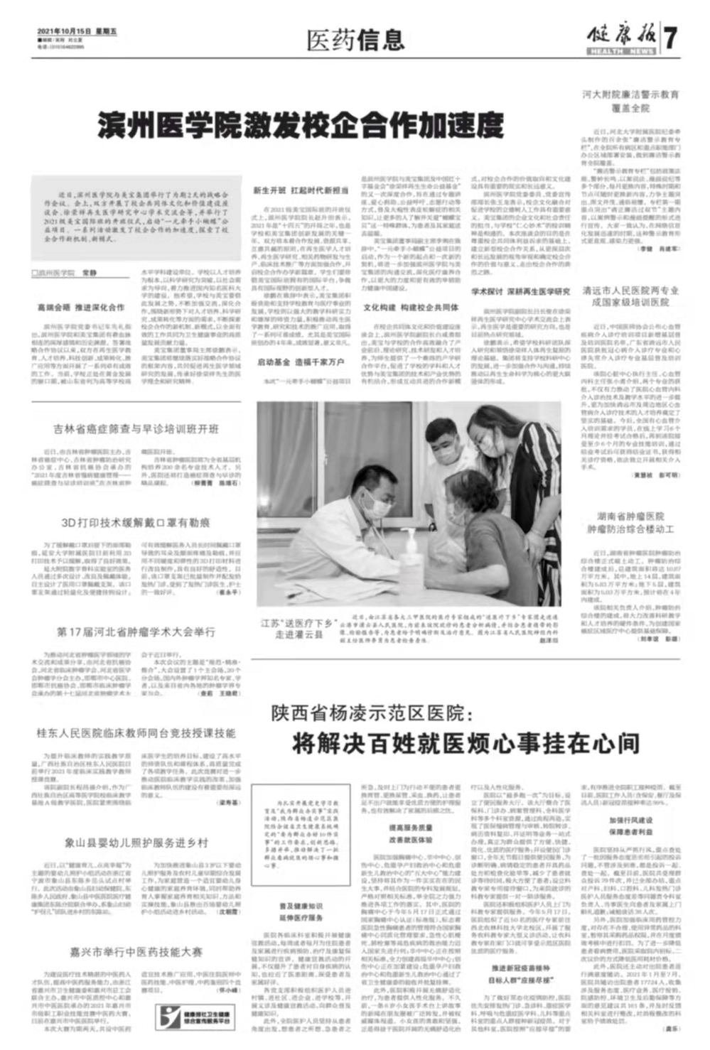 昨日,《健康报》7版头条以“滨州医学院激发校企合作加速度”为题报道了我校与美宝集团的深度战略合作,一系列活动开启了校企合作的加速度开关,探索了校企合作新机制、新模式。校企双方将以此次活动为契机,深入推进校企合作,深耕科研和人才培养,以丰硕的研究成果造福千家万户。