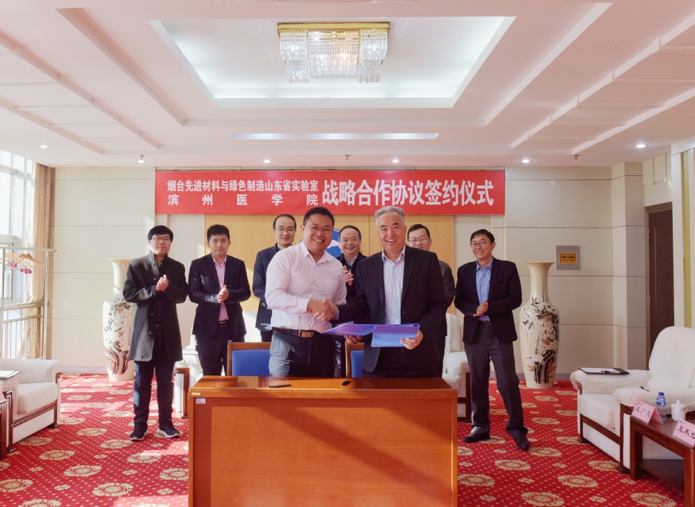 会见结束后,烟台先进材料与绿色制造山东省实验室常务副主任乔竹辉与滨州医学院副院长王广成代表双方共同签署了《烟台先进材料与绿色制造山东省实验室与滨州医学院战略合作协议》和《烟台先进材料与绿色制造山东省实验室与滨州医学院人才引进协议》。签约仪式后,相关专业人员在九楼会议室进行了深入交流探讨。