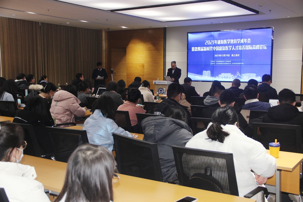 12月19日,由山东省康复医学会和我校联合主办的2021年康复医学教育学术年会暨第四届新时代中国康复医学人才培养国际高峰论坛在荣祥楼216会议室举办。副院长王广成,山东省康复医学会会长岳寿伟教授分别致辞。论坛采用线上线下同步的形式进行,山东省康复医学会康复医学教育委员会全体成员、我校康复医学院全体教师、研究生和本科生参加论坛。