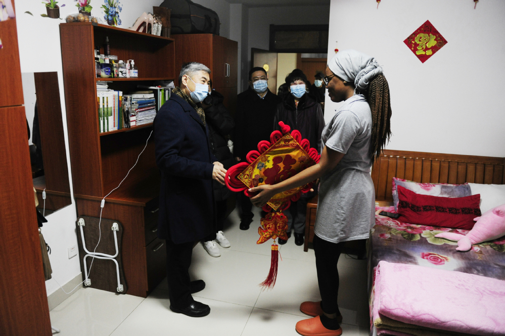 在学校各门卫值班室,校领导详细了解了学校安全保卫工作情况,并反复叮嘱一定要提高安全意识,做好学校安全稳定工作,保障学校全体教职员工和在校留学生度过平安祥和的春节;在留学生公寓,校领导与在校生亲切交流,就不同国域的文化风俗和假期的学习安排展开饶有趣味的交谈,现场一派和谐温暖的氛围;在运行保障中心,校领导仔细询问了春节期间校园的整体运行和服务保障情况,鼓励在岗值守人员要以热情饱满的工作态度,切实把保障运行工作做实、做细、做好。