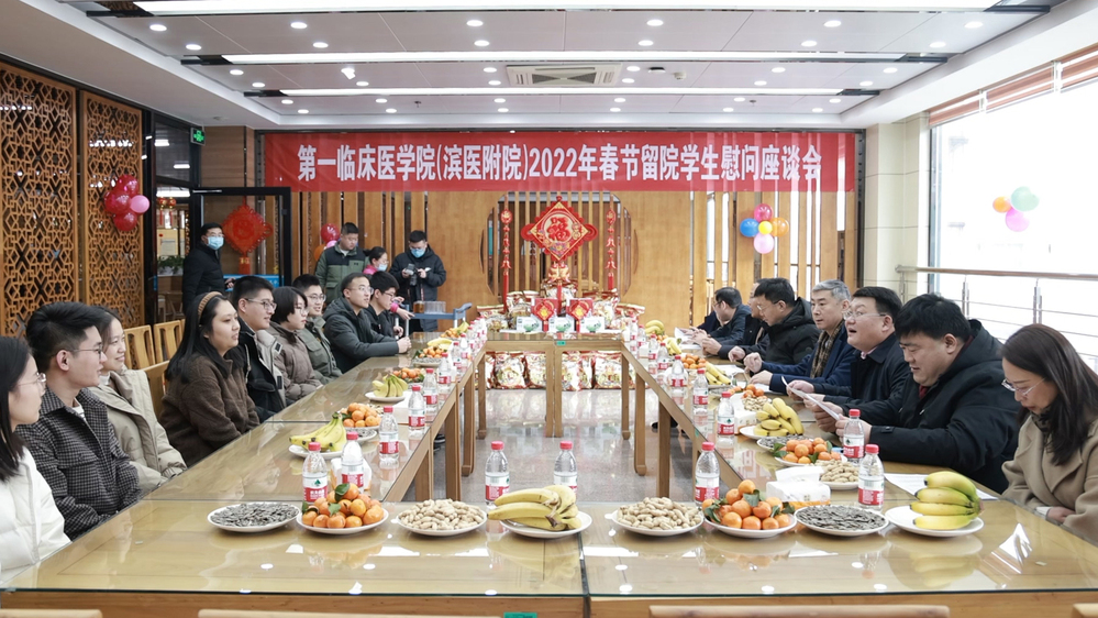 为扎实做好寒假疫情防控工作和留校学生的学习服务保障工作,1月30日上午,第一临床医学院(滨州附院)召开春节留校学生慰问座谈会。院长赵升田、副院长吕长俊代表学校向23名留校学生致以亲切的关怀和新春的祝福。
