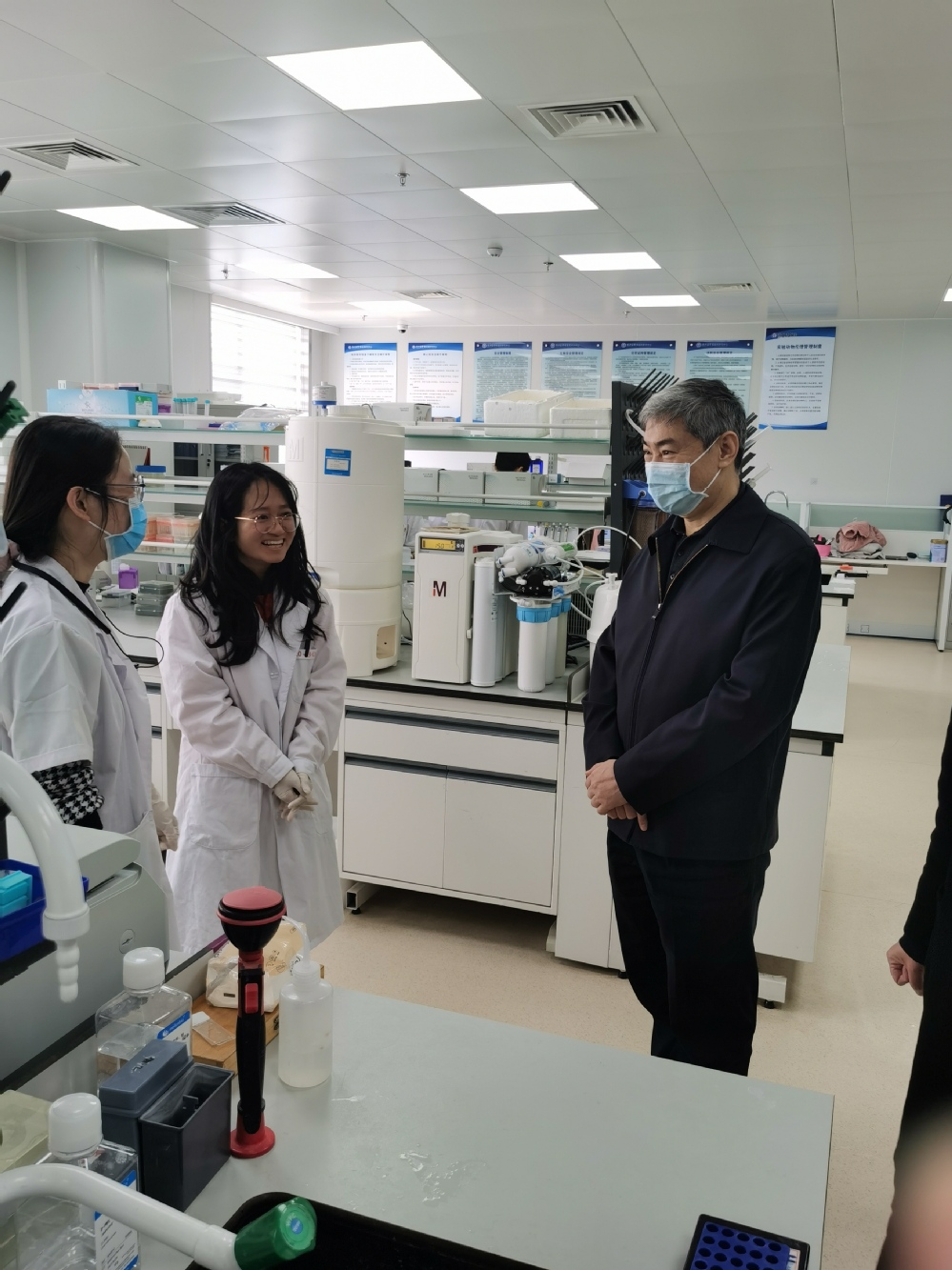 4月5日,院长赵升田在相关部门负责同志的陪同下,巡察校园实验室安全及疫情防控工作落实情况,看望慰问坚守在一线工作岗位上的科研人员。