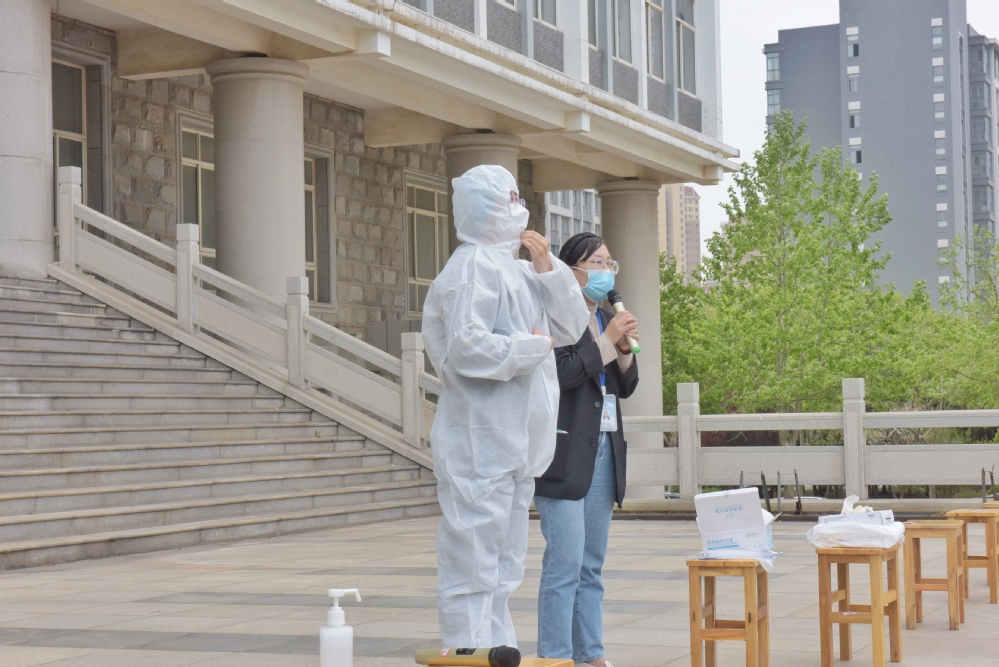为进一步做好新冠肺炎疫情防控工作,提高全校教职工疫情防控实操能力和应急处置能力,5月12日下午,我校开展全员防护服穿脱专题培训,全体在校教职工、后勤物业员工参与培训。