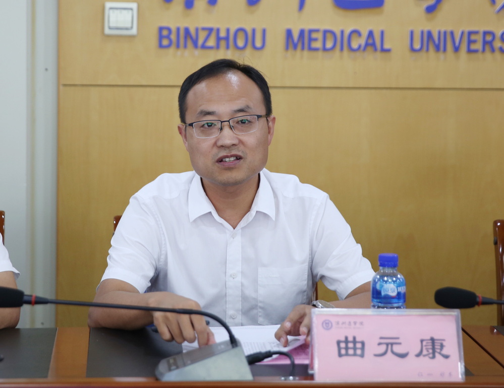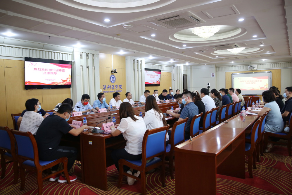 张玉龙对曲元康一行来校交流考察表示热烈欢迎,他介绍了我校的历史沿革、发展现状、人才培养、学科专业、优势特色以及我校共青团工作相关情况。他指出,学校早在2017年就与德州市人民政府签署了战略合作协议,有校地共建的良好基础;德州市人民医院是我校的非直属附属医院,多年来与学校一起培养并向社会输送了一大批医疗卫生人才;许多优秀的校友在德州工作生活,为德州医疗卫生事业发展作出应有贡献。他表示,团的工作要出彩,要创新,学校和地方共青团组织要多交流、多碰撞,研究新措施,开拓新局面,此次德州团市委来我校传经送宝,寻求合作,我们对此表示衷心感谢。