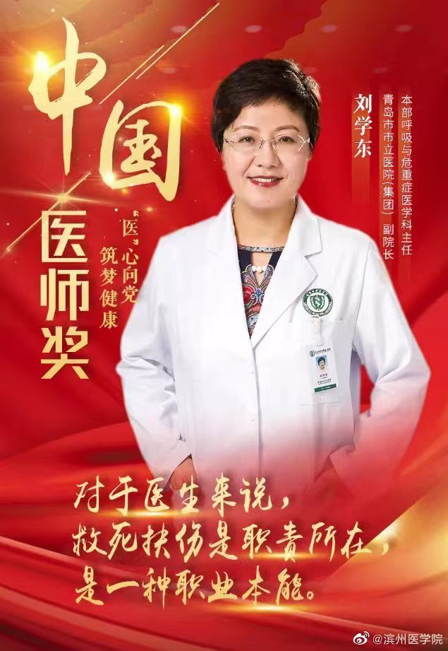 8月19日,2022年中国医师节庆祝大会暨第十三届“中国医师奖”颁奖大会在北京召开,青岛市市立医院副院长、青岛市市立医院集团医务部主任兼本部呼吸与危重医学科主任,滨医临床医学专业87级校友刘学东荣获这一医师行业最高奖。