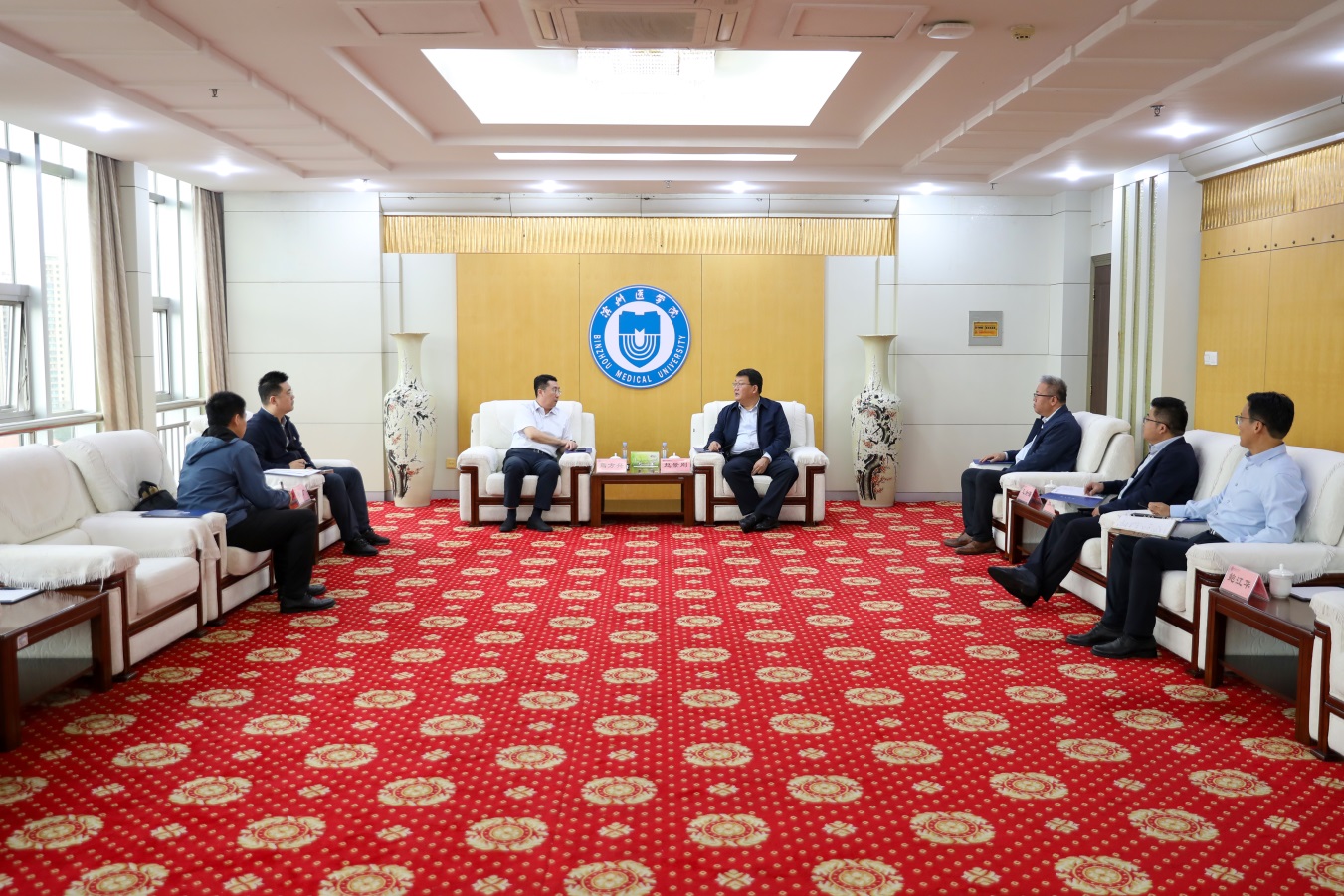 赵景刚代表学校对焉方兴一行的到来表示热烈欢迎,并介绍了学校的历史沿革、办学格局、发展建设等方面情况。他表示,学校高质量发展离不开莱山区委、区政府的大力支持,学校将更加主动地融入地方发展中来,深入推进校地合作,充分发挥高等医学院校的资源和人才优势,深化教研产融合发展和协同创新,为莱山区高质量发展作出新的贡献。