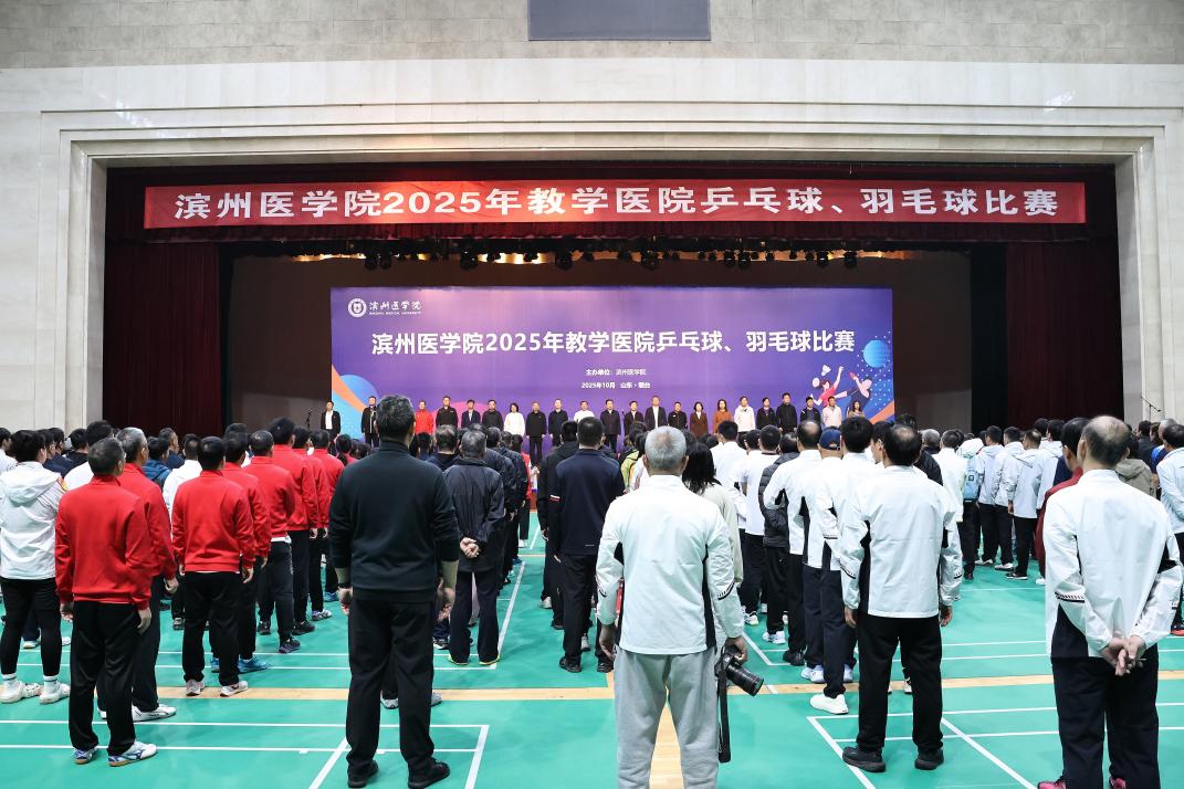 10月17日至18日,滨州医学院2025年教学医院乒乓球、羽毛球比赛顺利落下帷幕。校党委书记孙祥军出席开幕式并宣布比赛开幕,党委副书记于景科致开幕辞,副院长谢书阳为获奖团队及获奖个人颁奖。