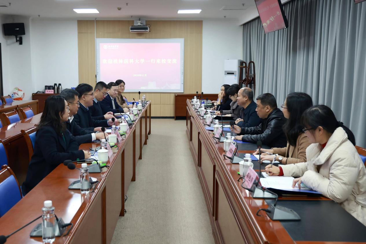 11月19日,桂林医科大学党委常委、副校长覃克强一行来校考察交流。校党委委员、副院长王术光陪同考察并参加座谈交流。