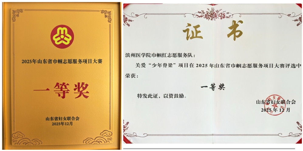 近日,滨州医学院巾帼红志愿服务队发起的关爱“少年脊梁”志愿服务项目迎来高光时刻:在滨州举行的山东省巾帼志愿服务项目大赛颁奖典礼上,该项目荣获一等奖;在临沂举行的山东省志愿服务项目大赛颁奖现场,该项目再获省赛银奖第一名,项目在全省两大权威评选中双双斩获重要奖项,彰显其扎实的服务成效与广泛的社会认可。