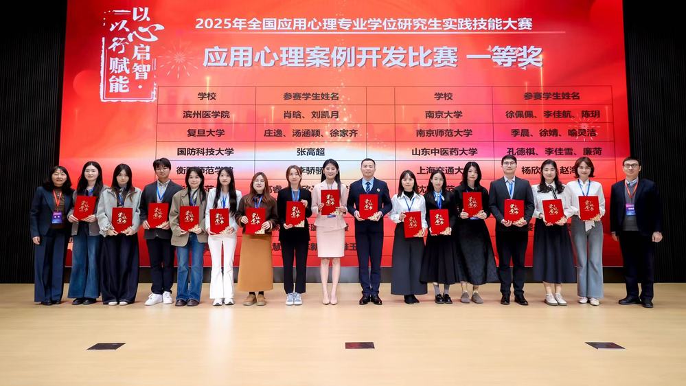 本届大赛吸引了来自全国146所高校近500支研究生团队参赛,全国各高校180位专家参与评审。经过初赛遴选,共有来自85所院校188支队伍齐聚决赛赛场。本届大赛由中国学位与研究生教育学会应用心理专业学位工作委员会与华东师范大学联合主办,是我国应用心理专业学位领域规格最高、影响最广的专业赛事。此次获奖展现了学生扎实的专业素养、突出的创新能力与深厚的社会情怀,充分彰显了学校应用心理专业“以赛促学、赛教融合”人才培养模式的丰硕成果,也体现了学校专业建设紧密对接社会现实需求,致力于培养应用型人才的培养理念。