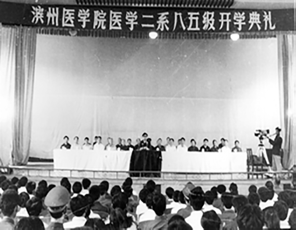 之后,学校快马加鞭,按照规范程序开始上报材料,并积极筹备相应办学条件。1985年1月20日,这是每个滨医人都深记的日子。山东省教育厅、卫生厅联合行文,向中国残疾人福利基金会报送《关于滨州医学院开办残疾人医学二系的意见》,同意滨州医学院自一九八五年开办残疾人医学二系,面向全国招生。之后,中央人民广播电台、《人民日报》《光明日报》等相继报道,宣告我国第一个残疾人医学系诞生的消息。9月12日,医学二系首届57名残疾人大学生入学。学校为他们举行了隆重的开学典礼,“当代青年学习的榜样”张海迪的讲话录音在全场响起的时候,许多新生低声啜泣起来,场面令人动容。