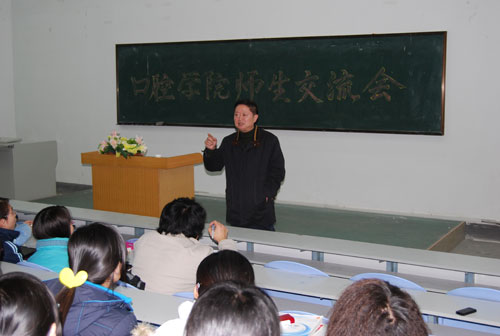 交流会上,张连凯简要介绍了口腔学院20年来的发展历程,以及口腔学院在学科专业建设、研究生教育、学生管理等方面所取得的可喜成绩,并向大家阐述了口腔学院的建设发展思路,使得同学们进一步明确了学习目标,端正了学习态度,鼓舞了学习士气。同时并就专业课程学习、宿舍管理、见习实习、考研就业等问题与同学们进行了现场交流和全面细致的解答。